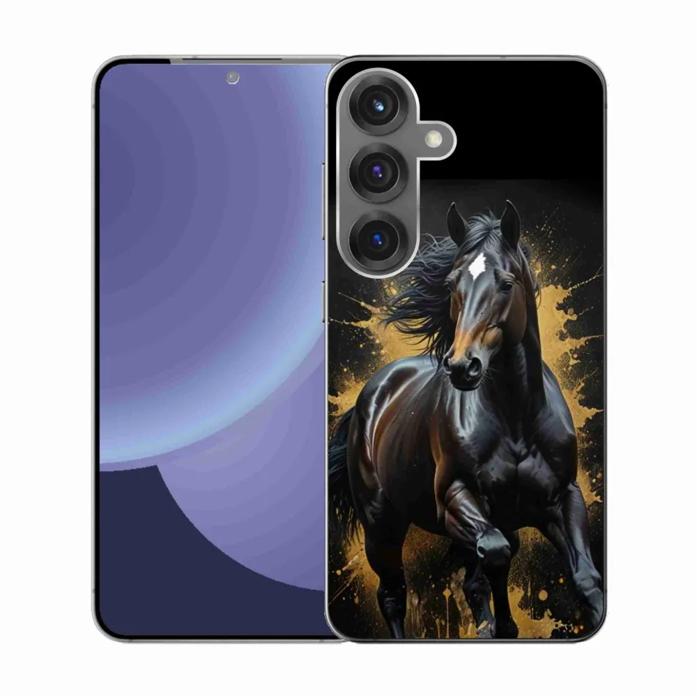 Pružný glový obal mmCase s obrázkom na Samsung Galaxy S25 - elegantný čierny žrebec