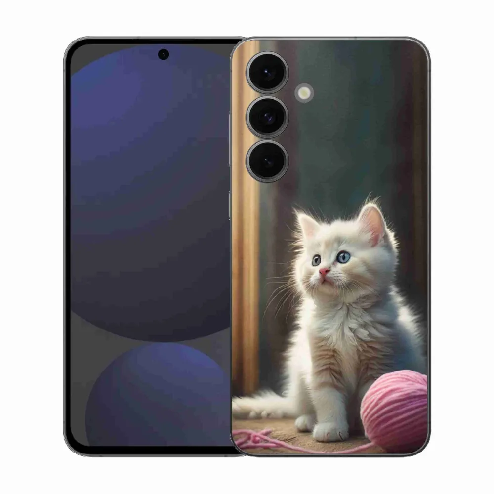 Pružný gélový obal mmCase s obrázkom na Samsung Galaxy S25 FE - biele mačiatko 2