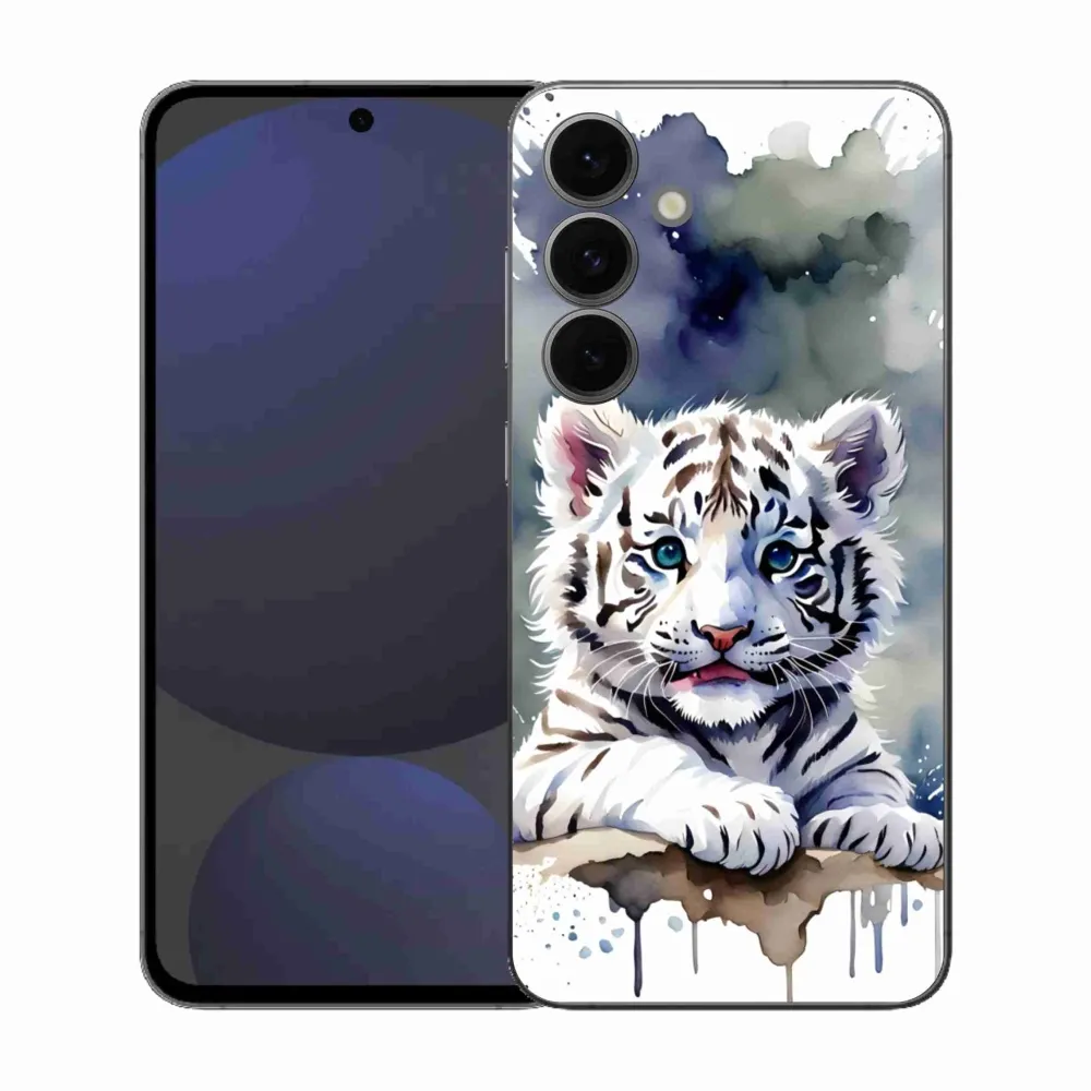 Psie púzdro na Samsung Galaxy S25 FE - mláďa bieleho tigra poskytuje všetky výhody gélových obalov, a to v zaujímavom dizajne.