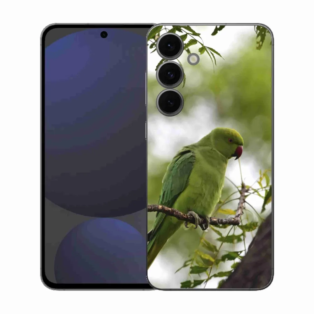Pružný gélový obal mmCase s obrázkom na Samsung Galaxy S25 FE - zelený papagáj