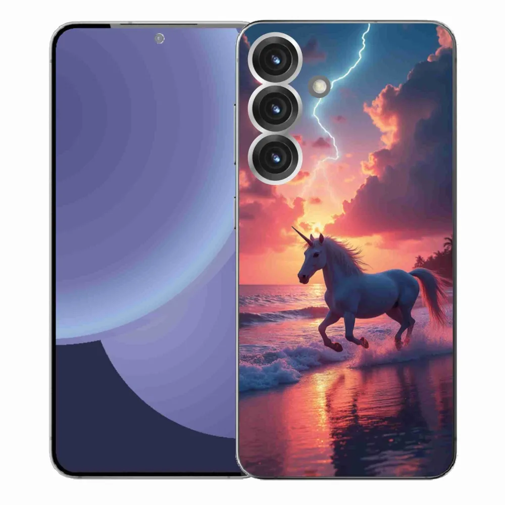 Púzdro s motívom koňa na Samsung Galaxy S25+ - jednorožec na pláži poskytuje všetky výhody gélových krytov, a to v zaujímavom dizajne.