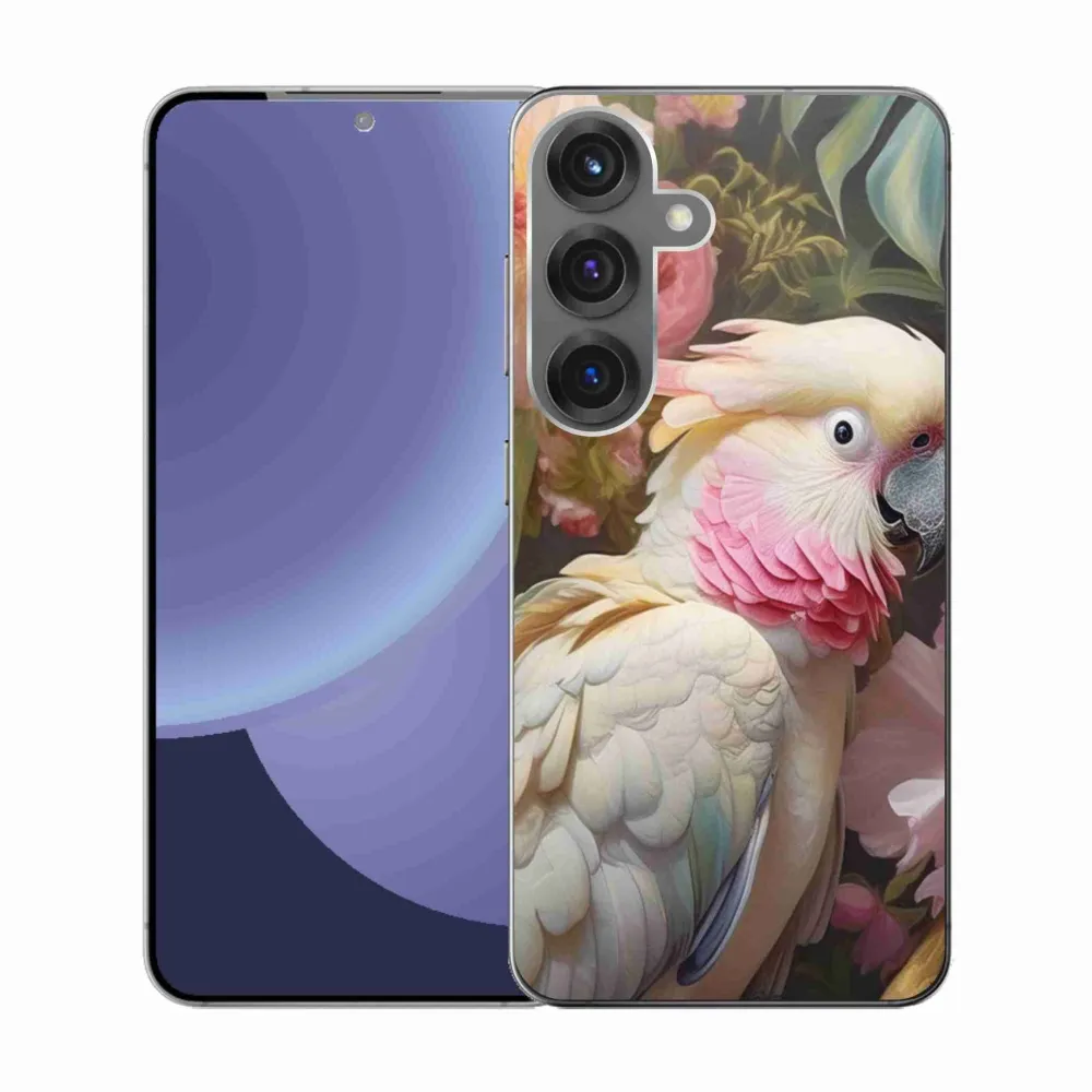 Pružný gélový obal mmCase s obrázkom na Samsung Galaxy S25 - papagáj kakadu ružový 2