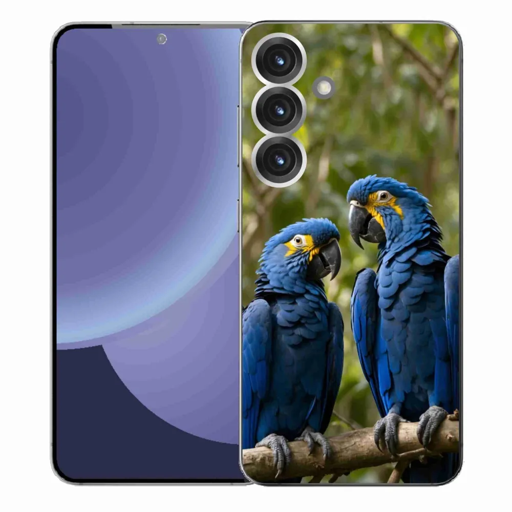 Pružný glový obal mmCase s obrázkom na Samsung Galaxy S25+ - papagájové duo