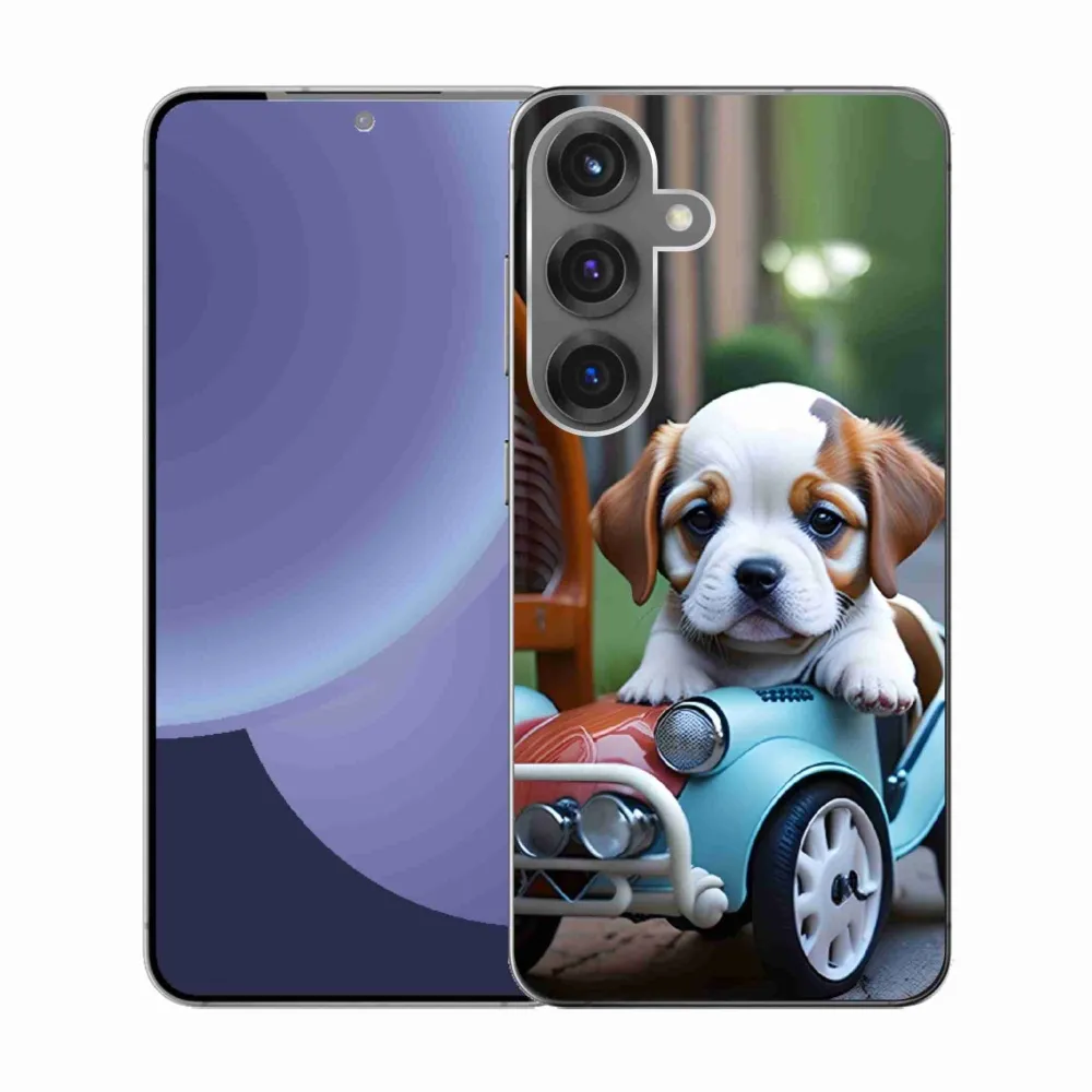 Pružný glový obal mmCase s obrázkom na Samsung Galaxy S25 - šteňa v retro aute