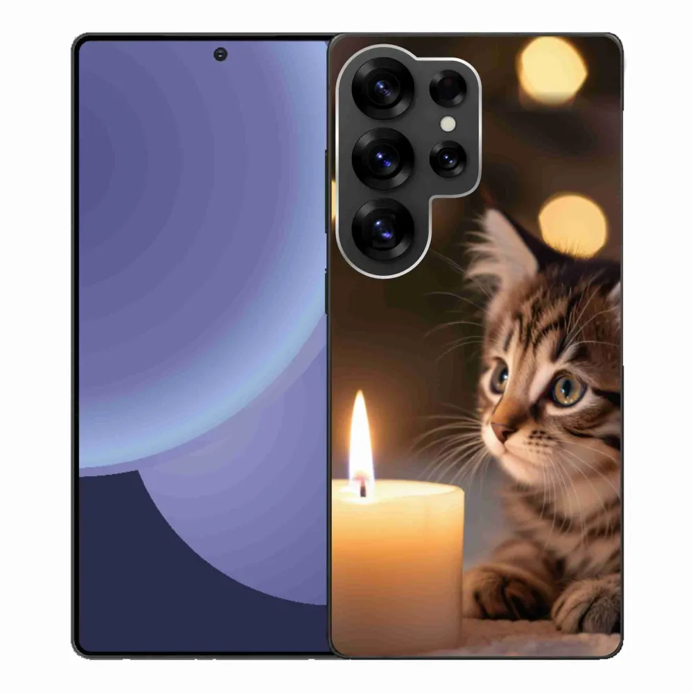 Pružný gélový obal mmCase s obrázkom na Samsung Galaxy S25 Ultra - mačiatko a sviečka
