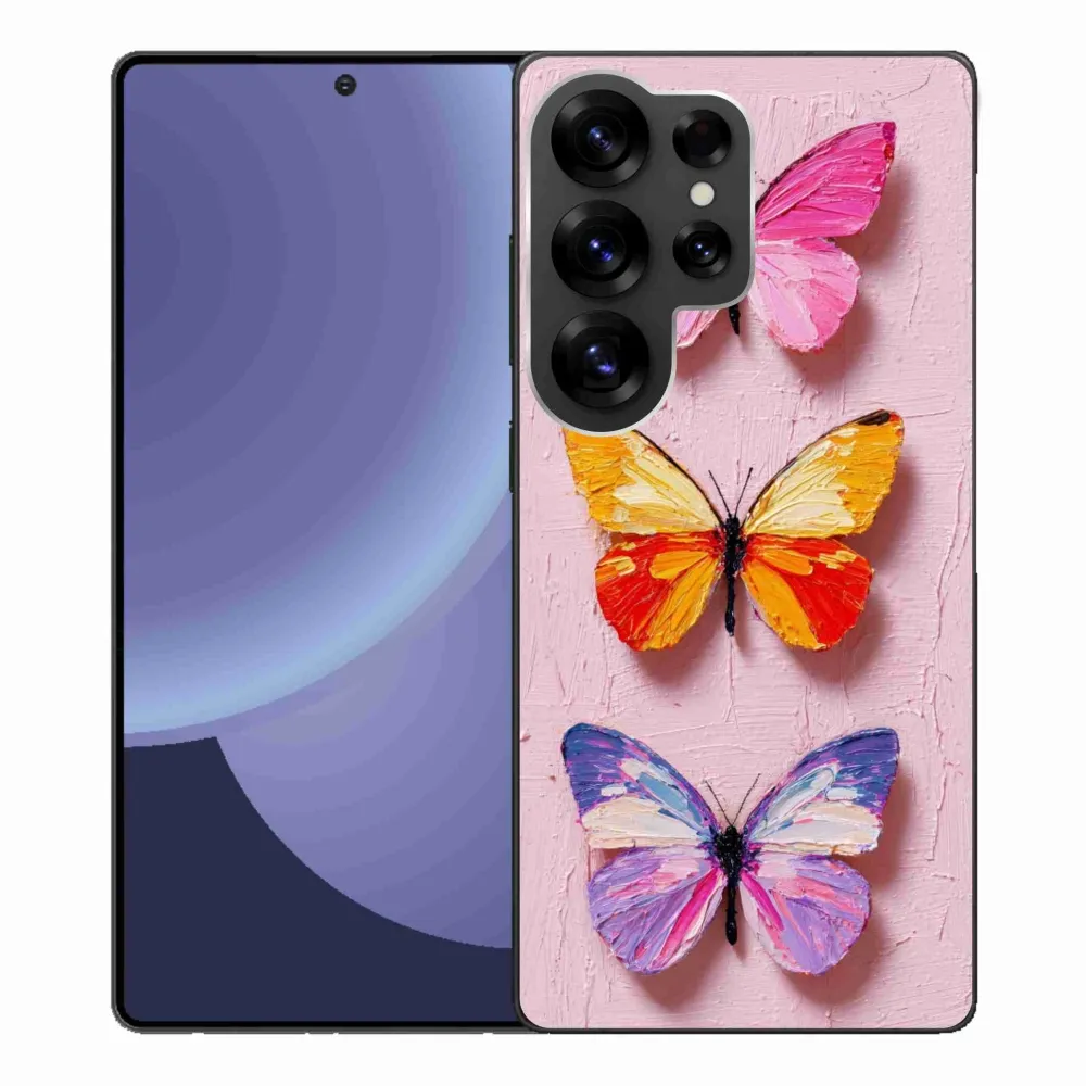 Zvieracie puzdro na Samsung Galaxy S25 Ultra - motýlia trojica poskytuje všetky výhody gélových obalov, a to v zaujímavom dizajne.