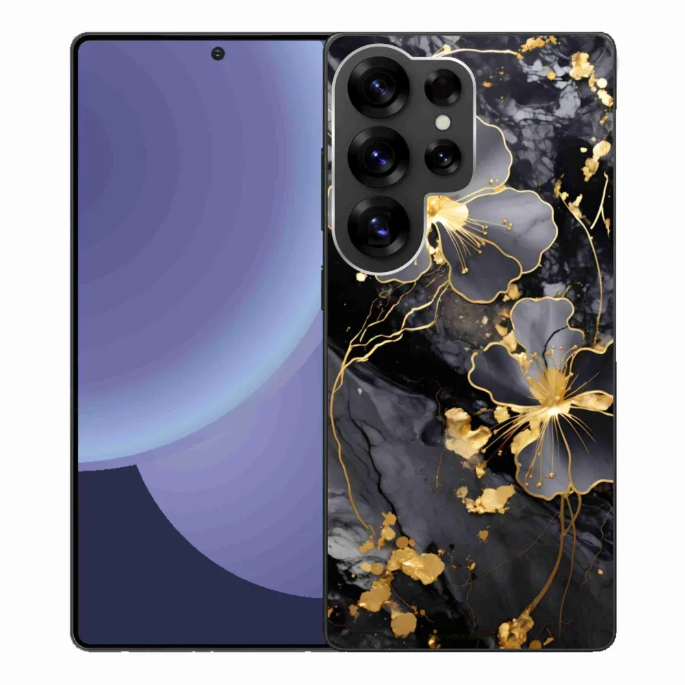 Pružný gélový obal mmCase s obrázkom na Samsung Galaxy S25 Ultra - zlaté kvety