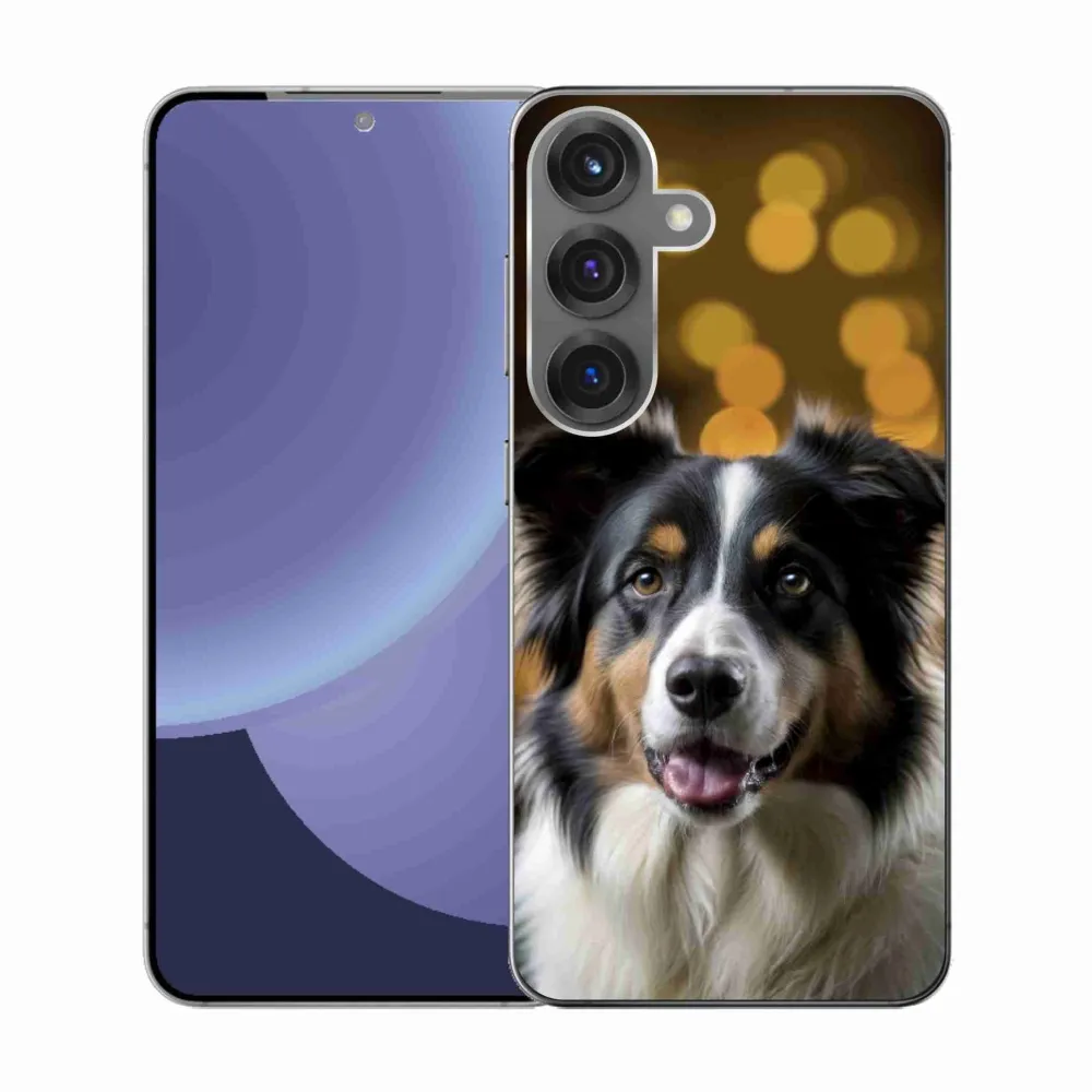 Pružný glový obal mmCase s obrázkom na Samsung Galaxy S25 - usmievavý austrálsky ovčiak
