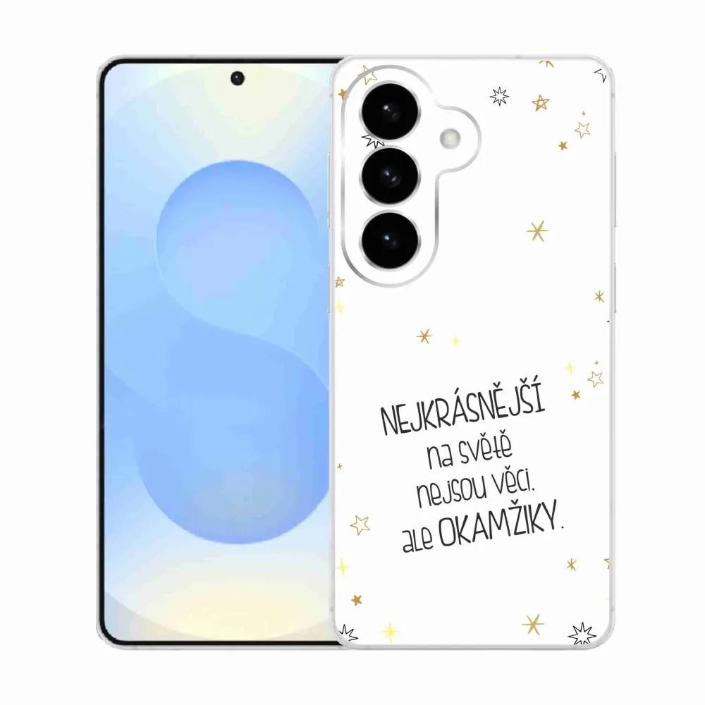 Pružný gélový obal mmCase s obrázkom na Samsung Galaxy S26 - citát 4 biele pozadie
