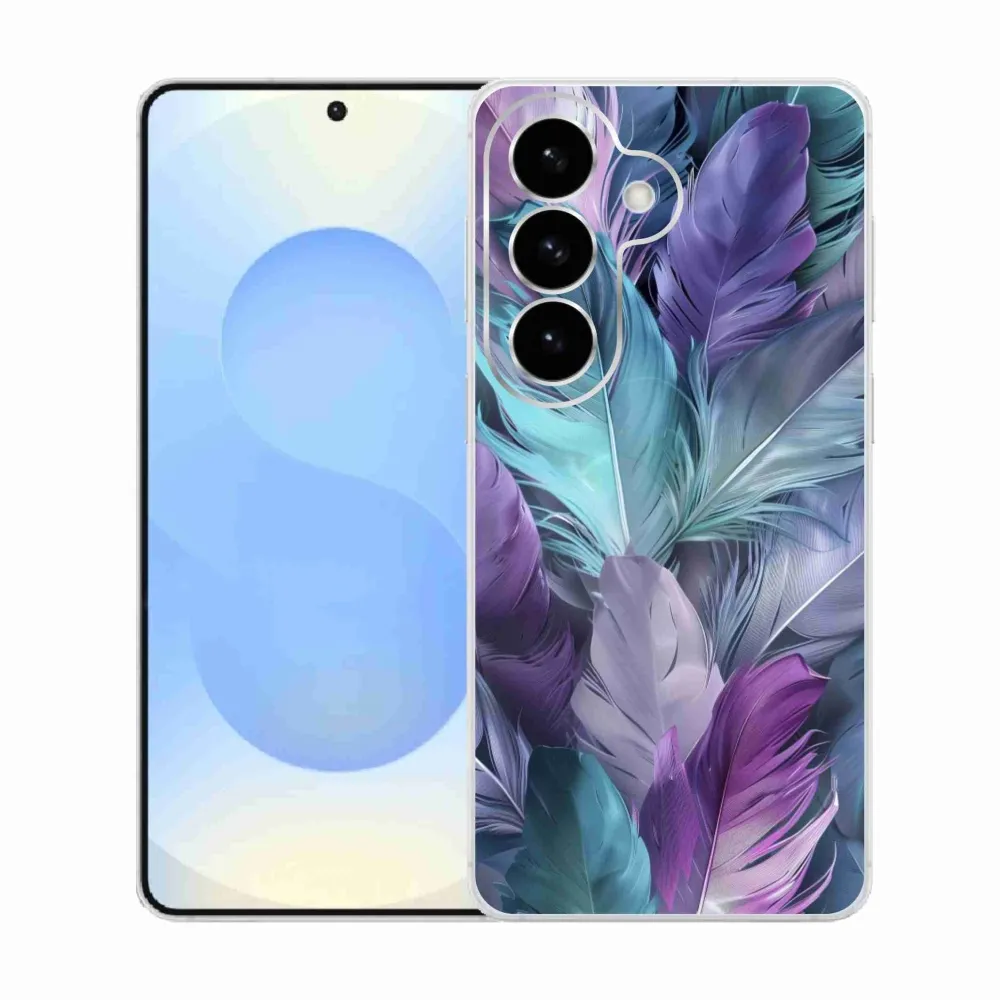 Pružný gélový obal mmCase s obrázkom na Samsung Galaxy S26 - farebné perie 2