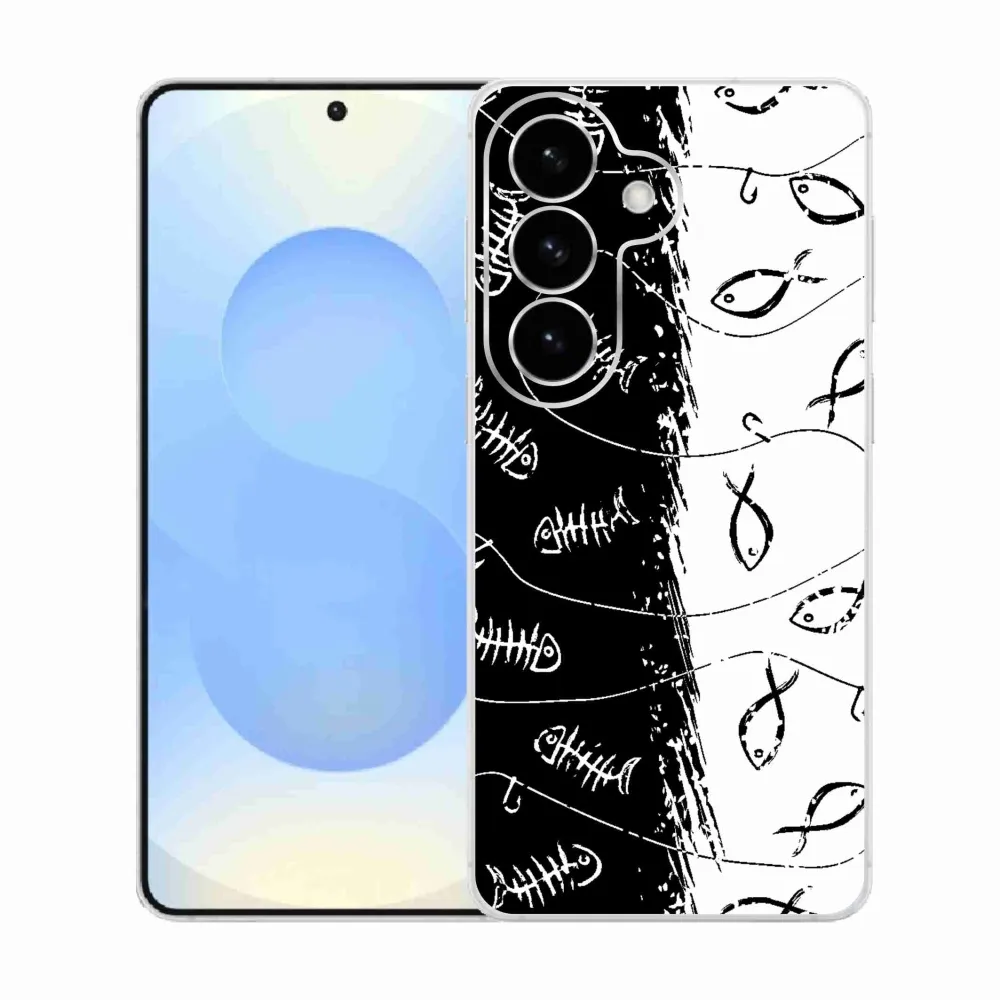 Púzdro pre rybárov na Samsung Galaxy S26 - kostry a rybky poskytuje všetky výhody gélových krytov, a to v zaujímavom dizajne.