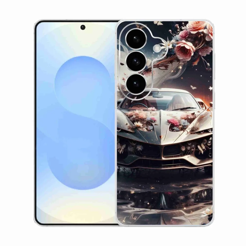 Puzdro na Samsung Galaxy S26 - kvetinový športový automobil poskytuje všetky výhody gélových obalov, a to v zaujímavom dizajne.