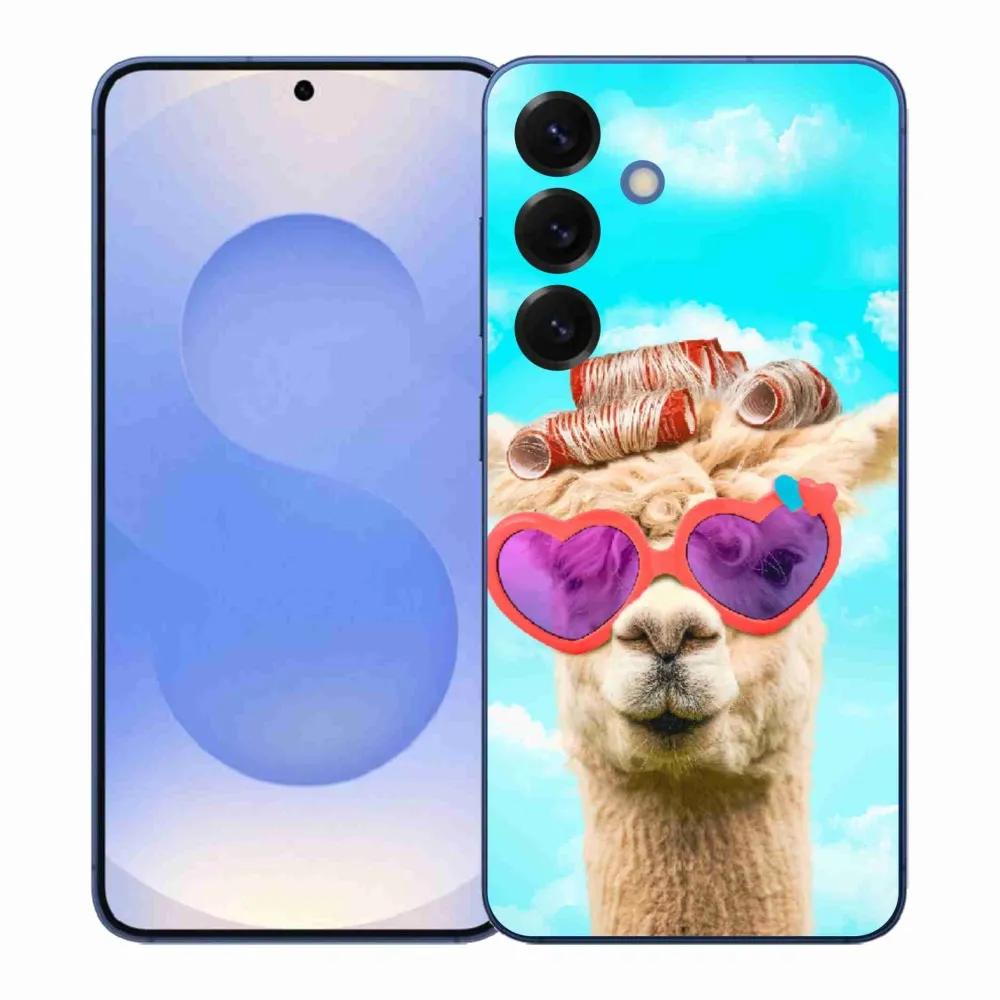 Pružný gélový obal mmCase s obrázkom na Samsung Galaxy S26+ - lama s okuliarmi