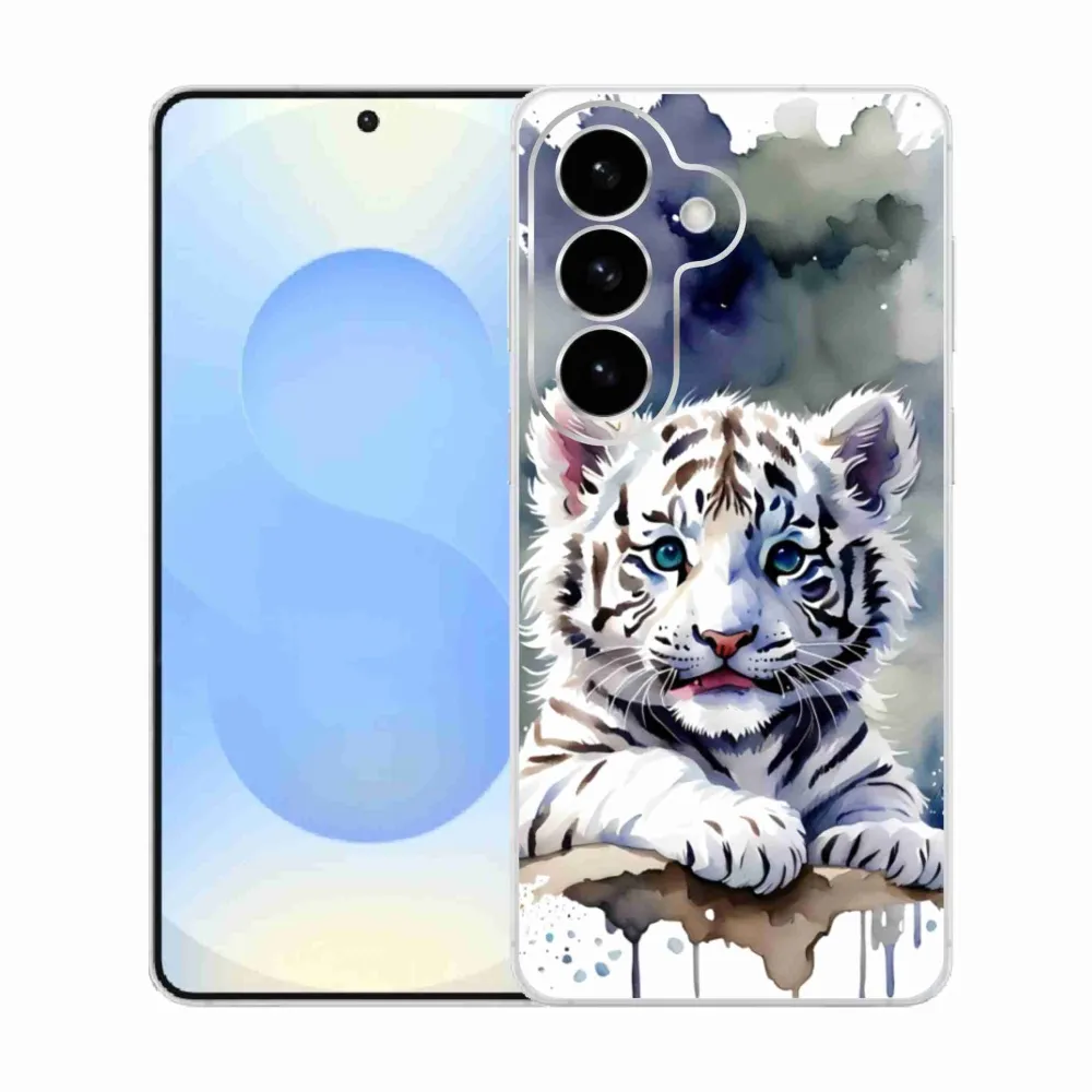 Pružný gélový obal mmCase s obrázkom na Samsung Galaxy S26 - mláďa bieleho tigra