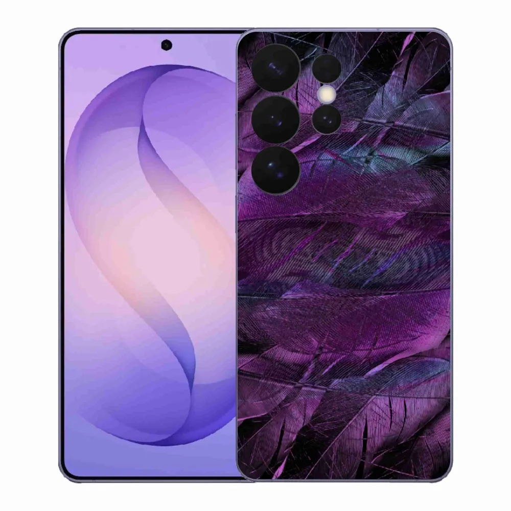 Pružný gélový obal mmCase s obrázkom na Samsung Galaxy S26 Ultra - fialové pierka