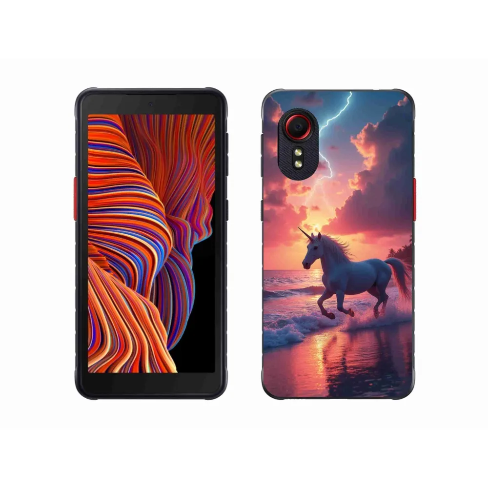 Púzdro s motívom koňa na Samsung Galaxy Xcover5 - jednorožec na pláži poskytuje všetky výhody gélových krytov, a to v zaujímavom dizajne.