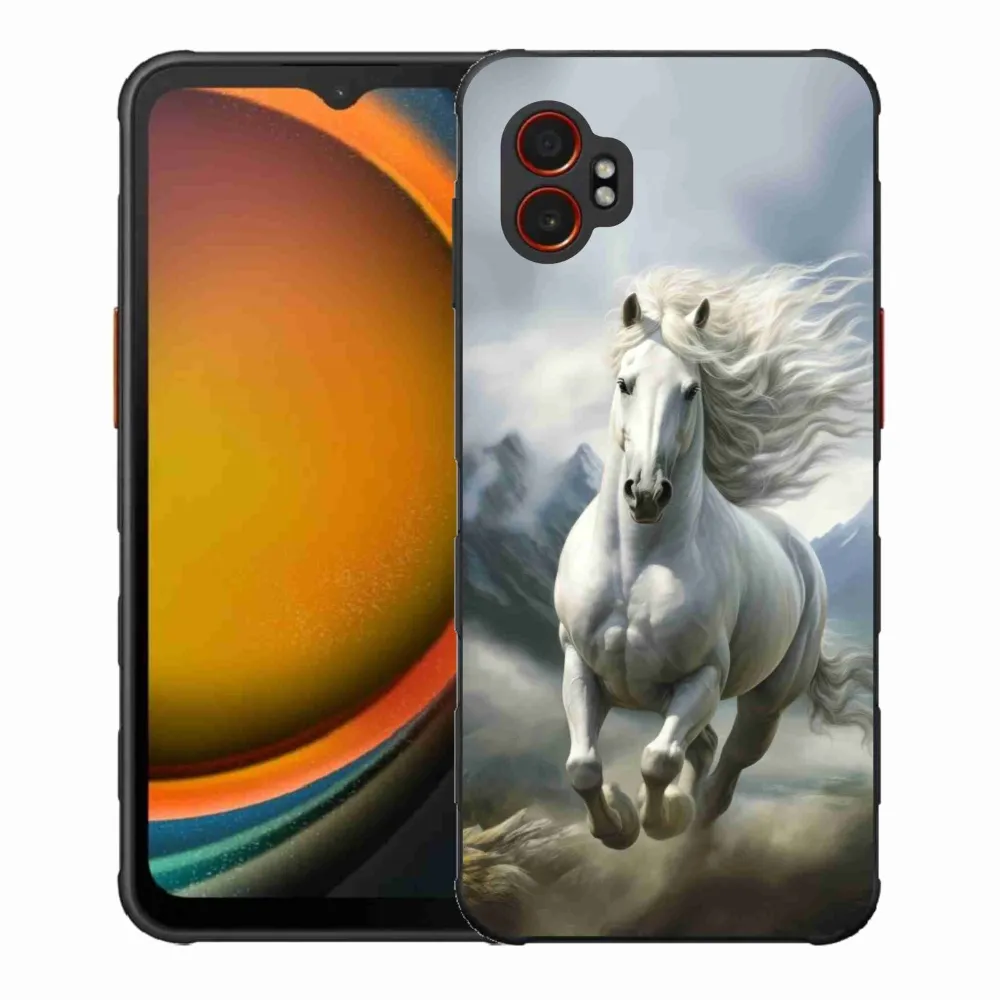 Púzdro s motívom koňa na Samsung Galaxy Xcover 7 - bežiaci biely kôň 3 poskytuje všetky výhody gélových krytov, a to v zaujímavom dizajne.
