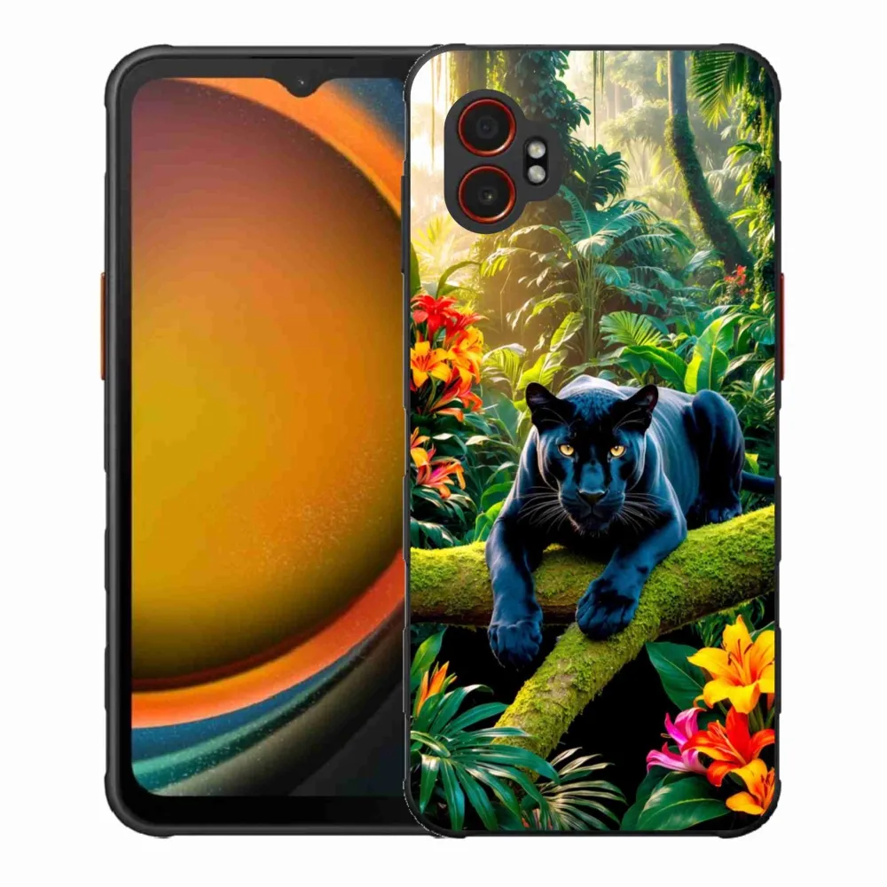 Zvieracie puzdro na Samsung Galaxy Xcover 7 Pro - čierny panter v džungli poskytuje všetky výhody gélových obalov, a to v zaujímavom dizajne.