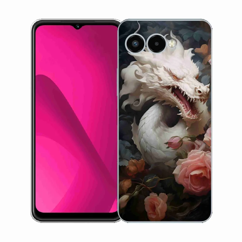 Zvieracie púzdro na T-Mobile T Phone 3 – biely drak poskytuje všetky výhody gélových obalov, a to v zaujímavom dizajne.