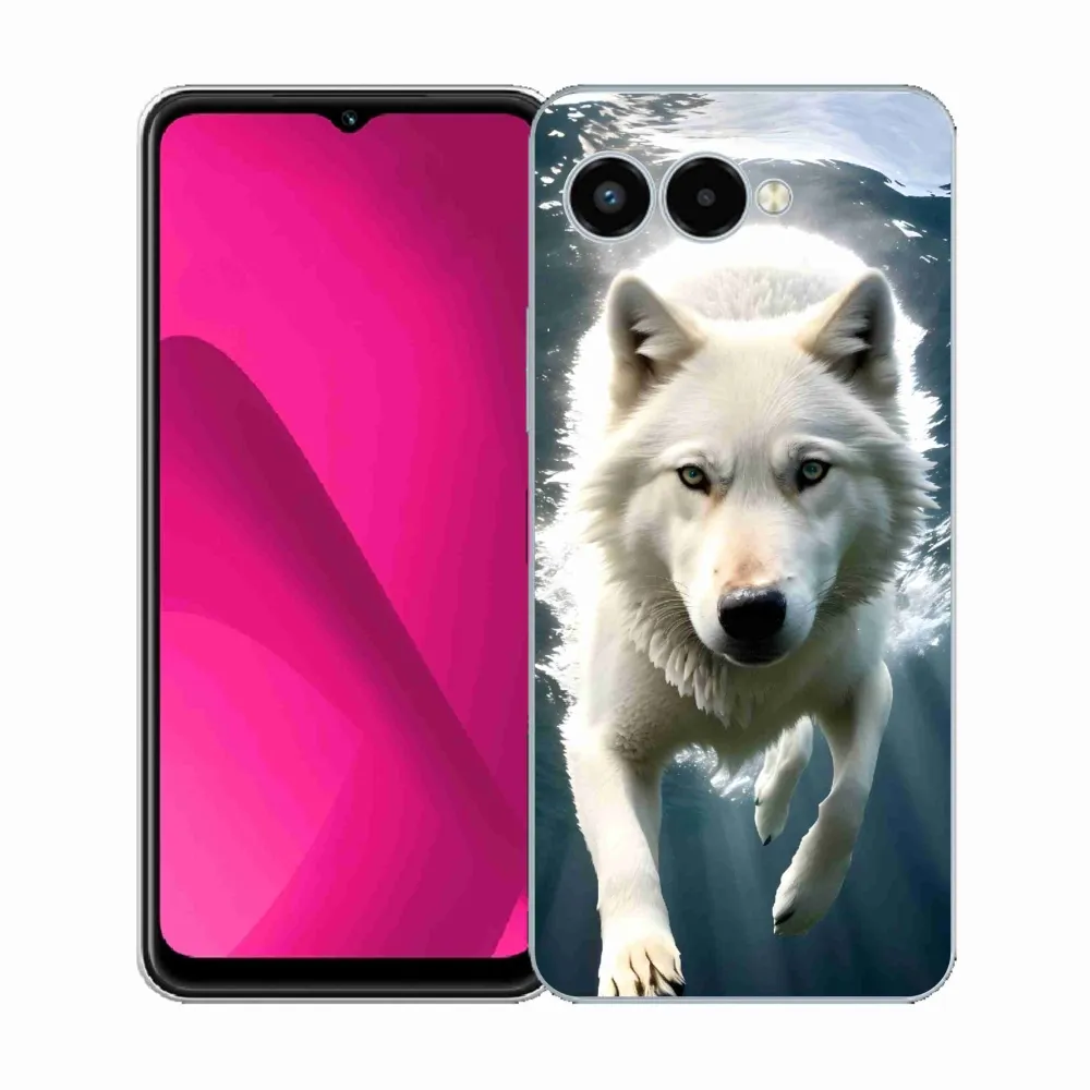 Pružný gélový obal mmCase s obrázkom na T-Mobile T Phone 3 - biely vlk