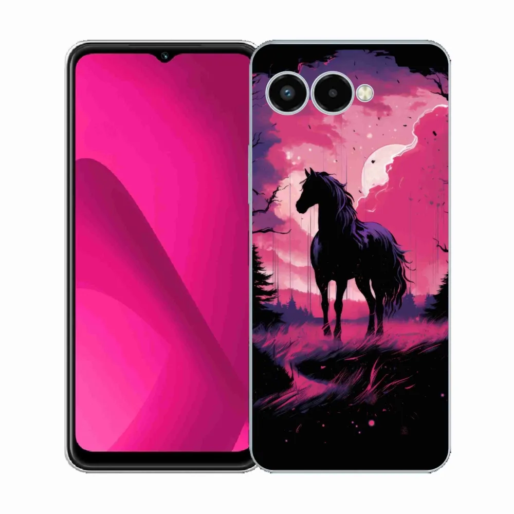 Pružný gélový obal mmCase s obrázkom na T-Mobile T Phone 3 - čierny kreslený kôň 1