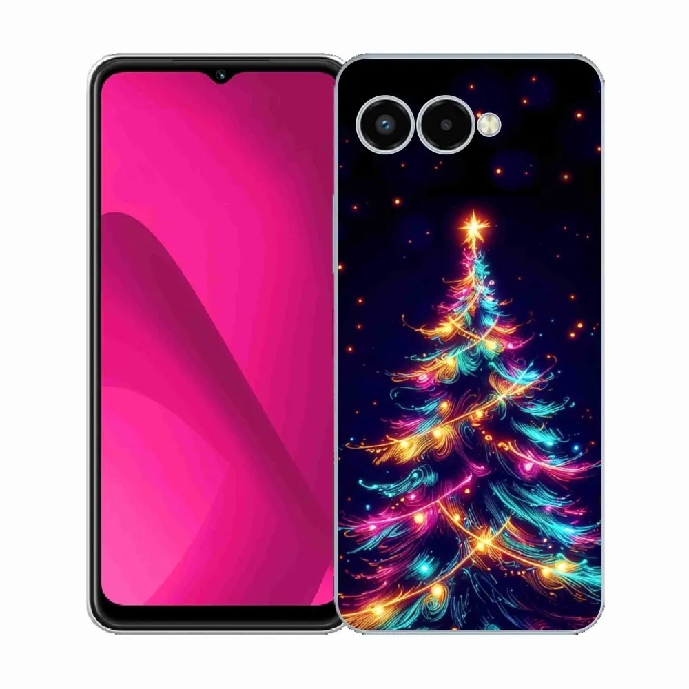 Vianočné puzdro na T-Mobile T Phone 3 - neónový vianočný stromček poskytuje všetky výhody gélových obalov, a to v zaujímavom dizajne."