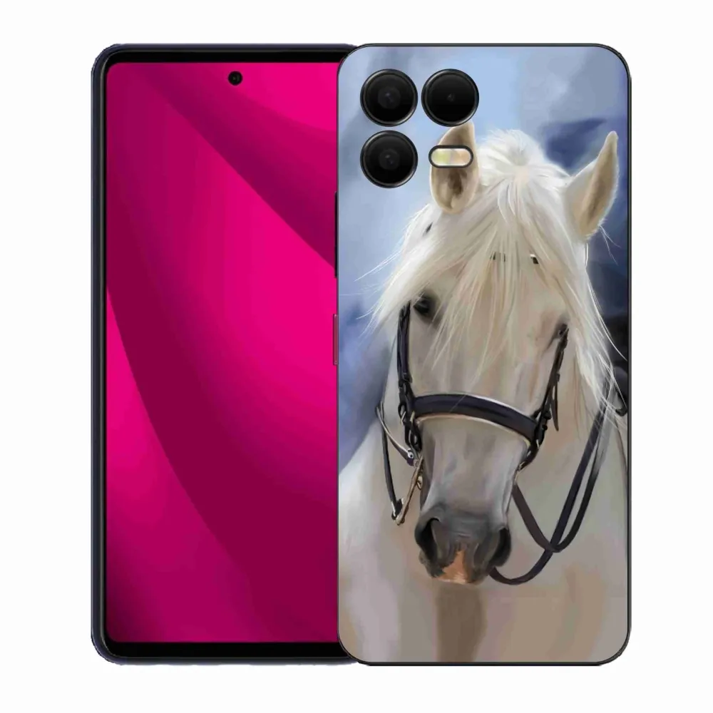 Pružný gélový obal mmCase s obrázkom na T-Mobile T Phone 3 Pro - biely kôň