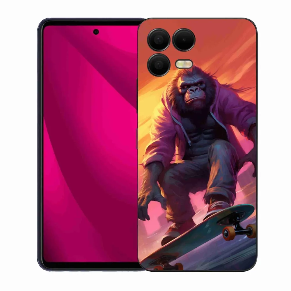 Zvieracie púzdro na T-Mobile T Phone 3 Pro – gorila na skateboarde poskytuje všetky výhody gélových obalov, a to v zaujímavom dizajne.