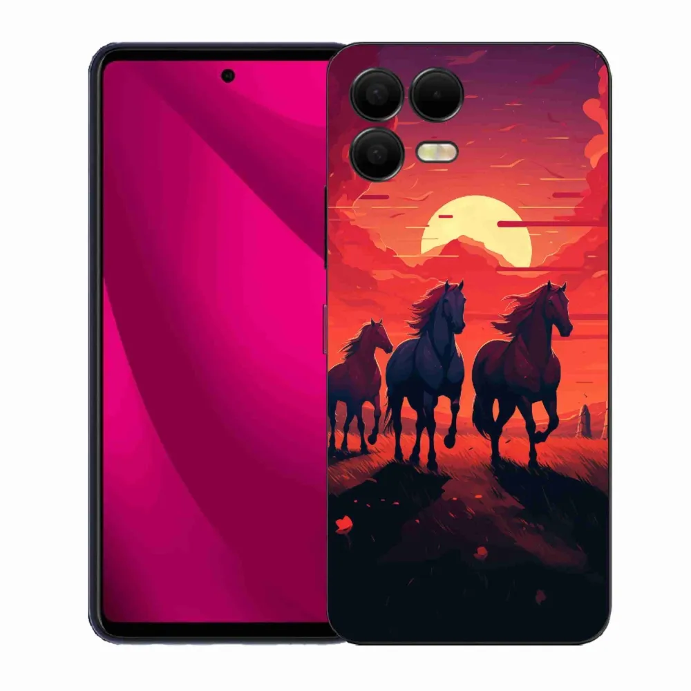 Pružný gélový obal mmCase s obrázkom na T-Mobile T Phone 3 Pro - kone a západ slnka