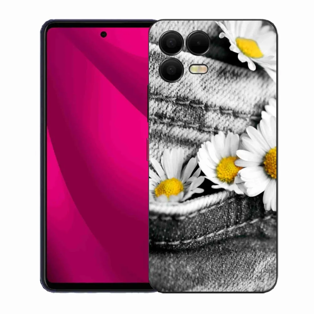 Pružný gélový obal mmCase s obrázkom na T-Mobile T Phone 3 Pro - margaréty