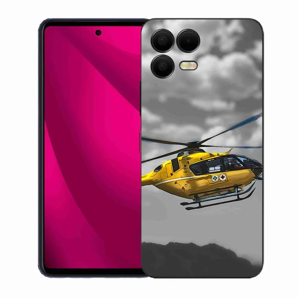 Pružný gélový obal mmCase s obrázkom na T-Mobile T Phone 3 Pro - žltá helikoptéra