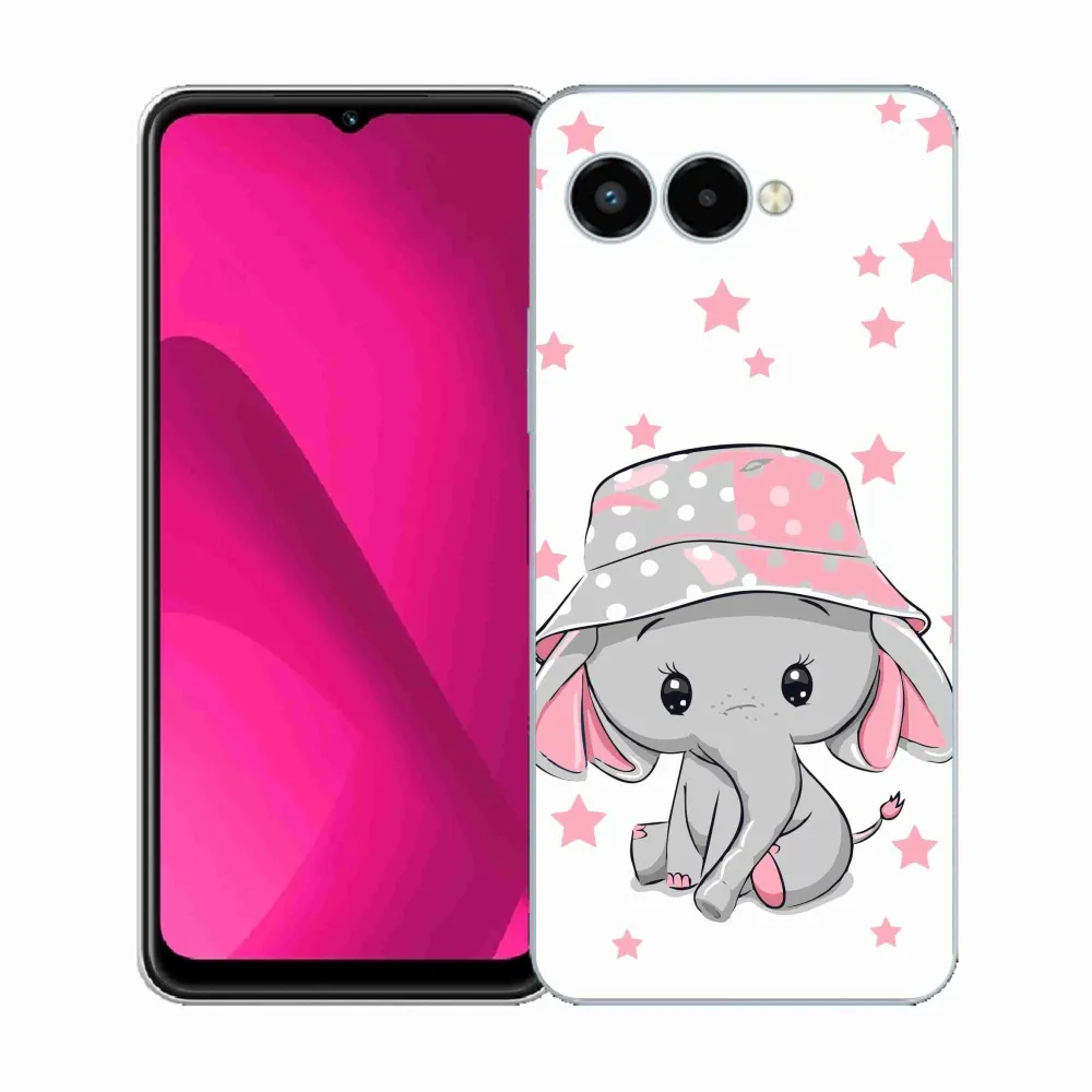 Pružný gélový obal mmCase s obrázkom na T-Mobile T Phone 3 - ružový slon