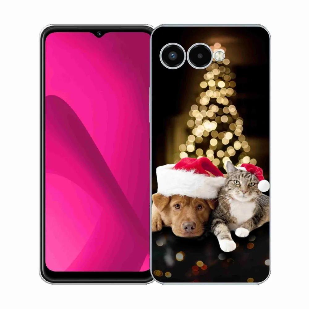 Vianočné puzdro na T-Mobile T Phone 3 - vianočný pes a mačka poskytuje všetky výhody gélových obalov, a to v zaujímavom dizajne.