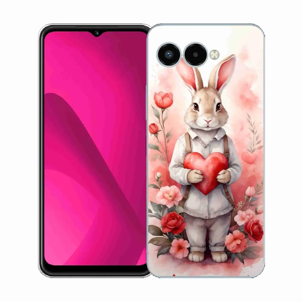 Zvieracie púzdro na T-Mobile T Phone 3 – zajac so srdiečkom poskytuje všetky výhody gélových obalov, a to v zaujímavom dizajne.