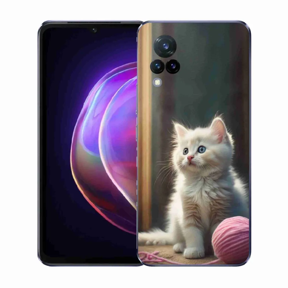 Mačacie púzdro na Vivo V21 4G/5G - biele mačiatko 2 poskytuje všetky výhody gélových obalov, a to v zaujímavom dizajne.