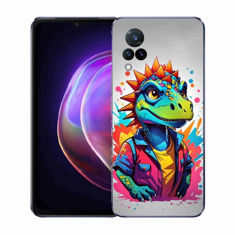 Zvieracie púzdro na Vivo V21 4G/5G – farebný dinosaurus poskytuje všetky výhody gélových obalov, a to v zaujímavom dizajne.