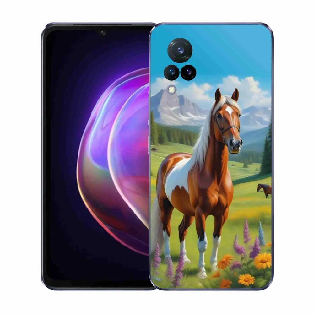 Pružný gélový obal mmCase s obrázkom na Vivo V21 4G/5G - kôň na lúke