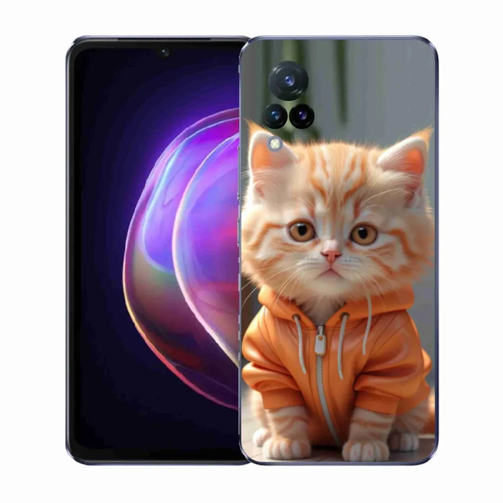 Mačacie púzdro na Vivo V21 4G/5G - mačiatko v mikine poskytuje všetky výhody gélových obalov, a to v zaujímavom dizajne.