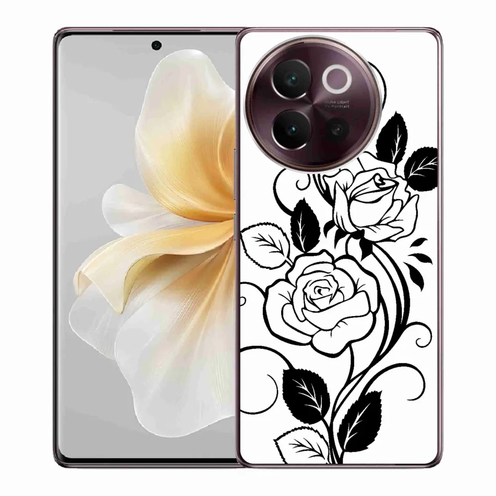 Kvetinové púzdro na Vivo V40 Lite - čiernobiela ruža poskytuje všetky výhody gélových obalov, a to v zaujímavom dizajne.