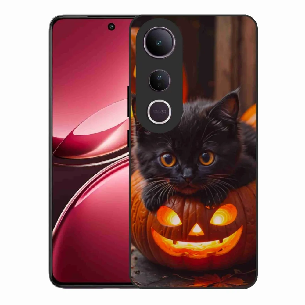 Mačacie púzdro na Vivo V50 Lite 4G/5G - mačiatko a tekvica poskytuje všetky výhody gélových obalov, a to v zaujímavom dizajne.