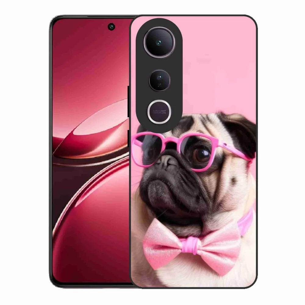 Psie púzdro na Vivo V50 Lite 4G/5G - štýlový mops poskytuje všetky výhody gélových obalov, a to v zaujímavom dizajne.