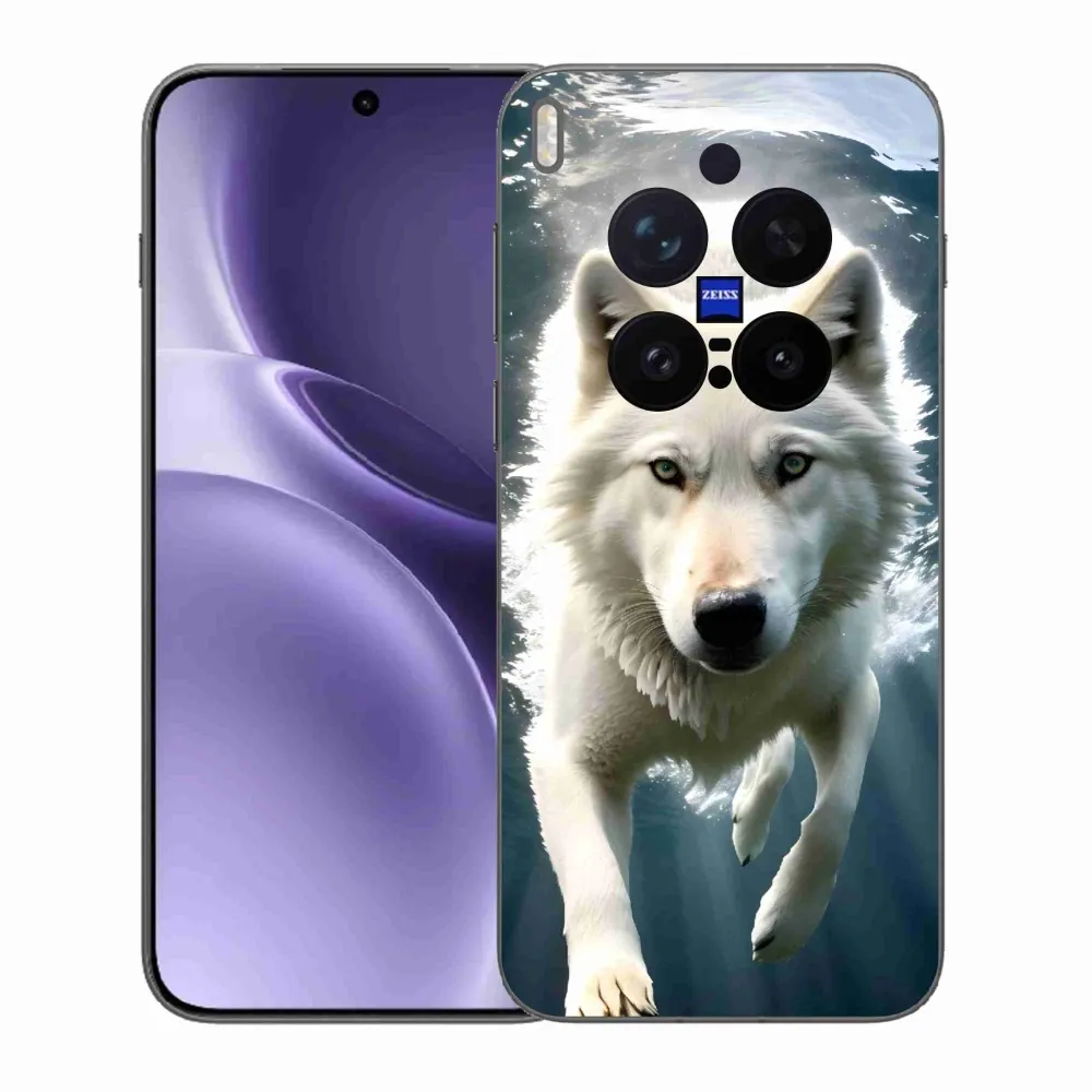 Pružný gélový obal mmCase s obrázkom na Vivo X300 Pro - biely vlk