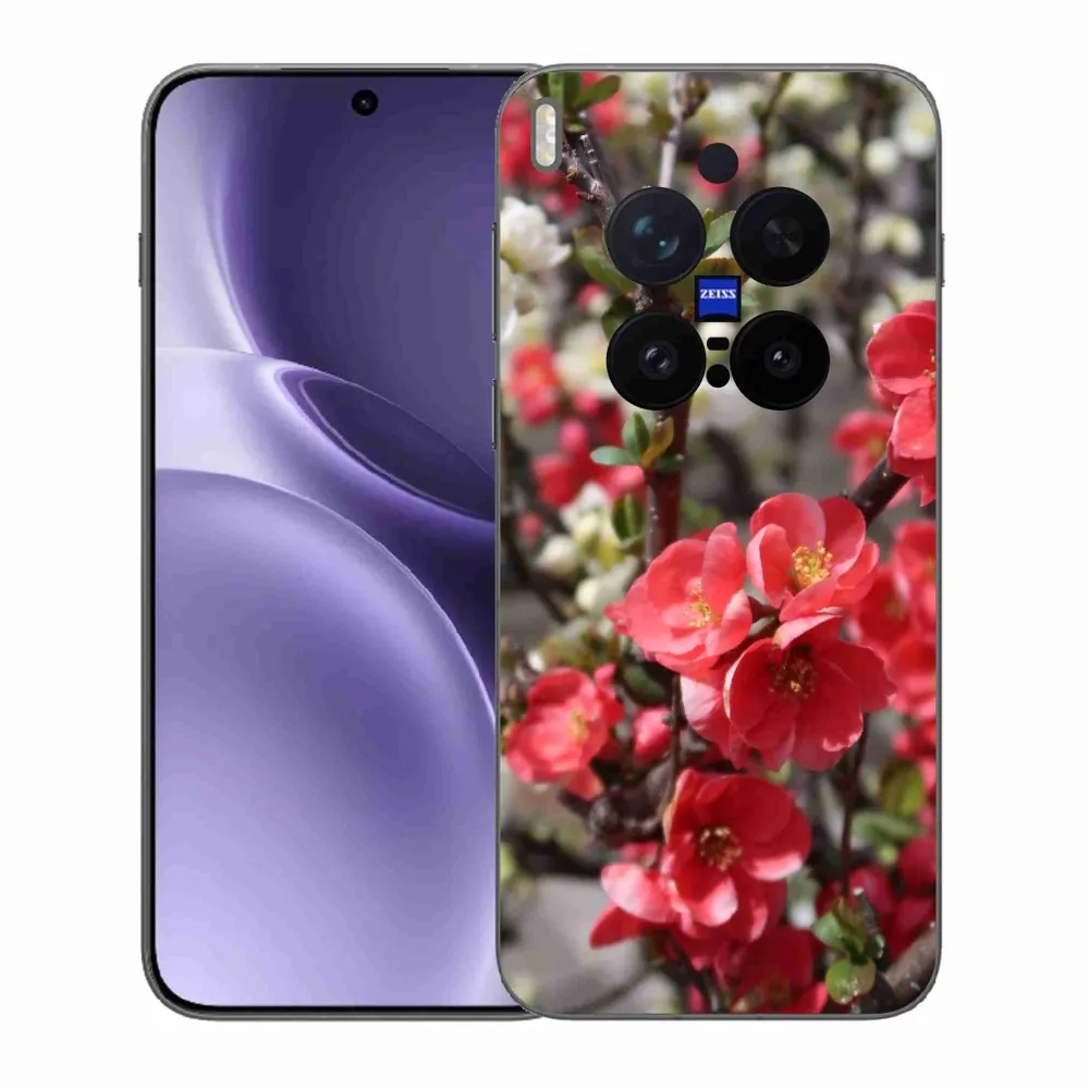 Pružný gélový obal mmCase s obrázkom na Vivo X300 Pro - červené kvety