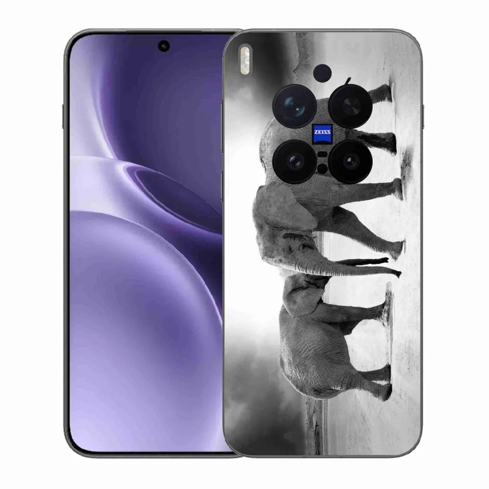 Zvieracie púzdro na Vivo X300 Pro - čiernobieli slony poskytuje všetky výhody gélových obalov, a to v zaujímavom dizajne.