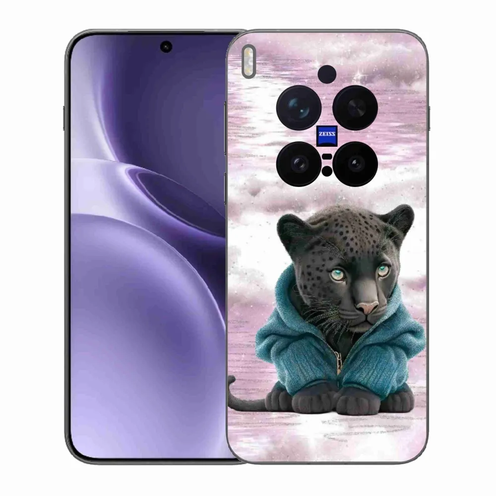 Pružný gélový obal mmCase s obrázkom na Vivo X300 Pro - čierny panter vo svetri