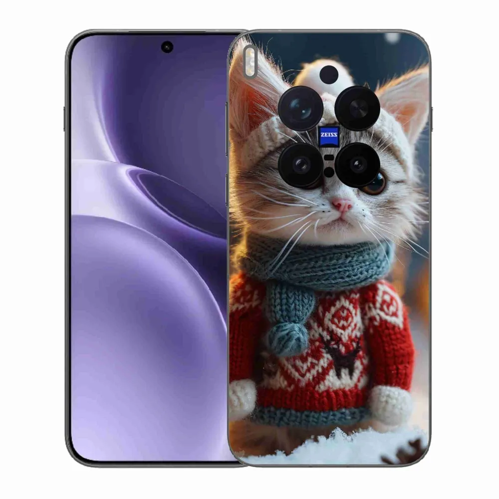 Pružný gélový obal mmCase s obrázkom na Vivo X300 Pro - mačiatko vo svetri