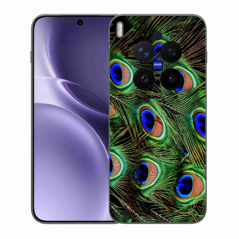 Pružný gélový obal mmCase s obrázkom na Vivo X300 Pro - pávie perie