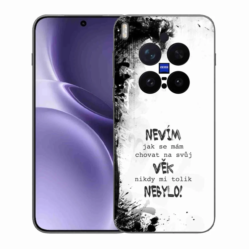 Pružný gélový obal mmCase s obrázkom na Vivo X300 Pro - vtipný text 14 biele pozadie