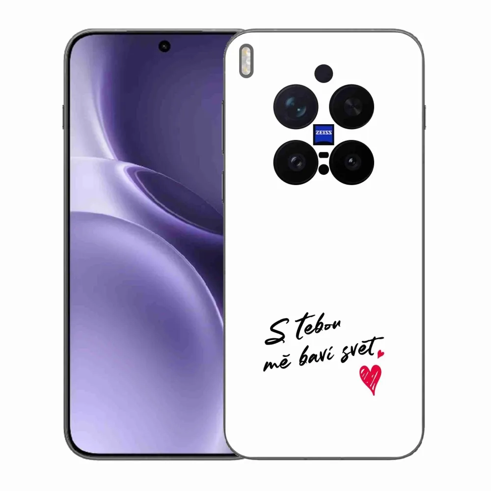 Pružný gélový obal mmCase s obrázkom na Vivo X300 Pro - zamilovaný text 1 biele pozadie