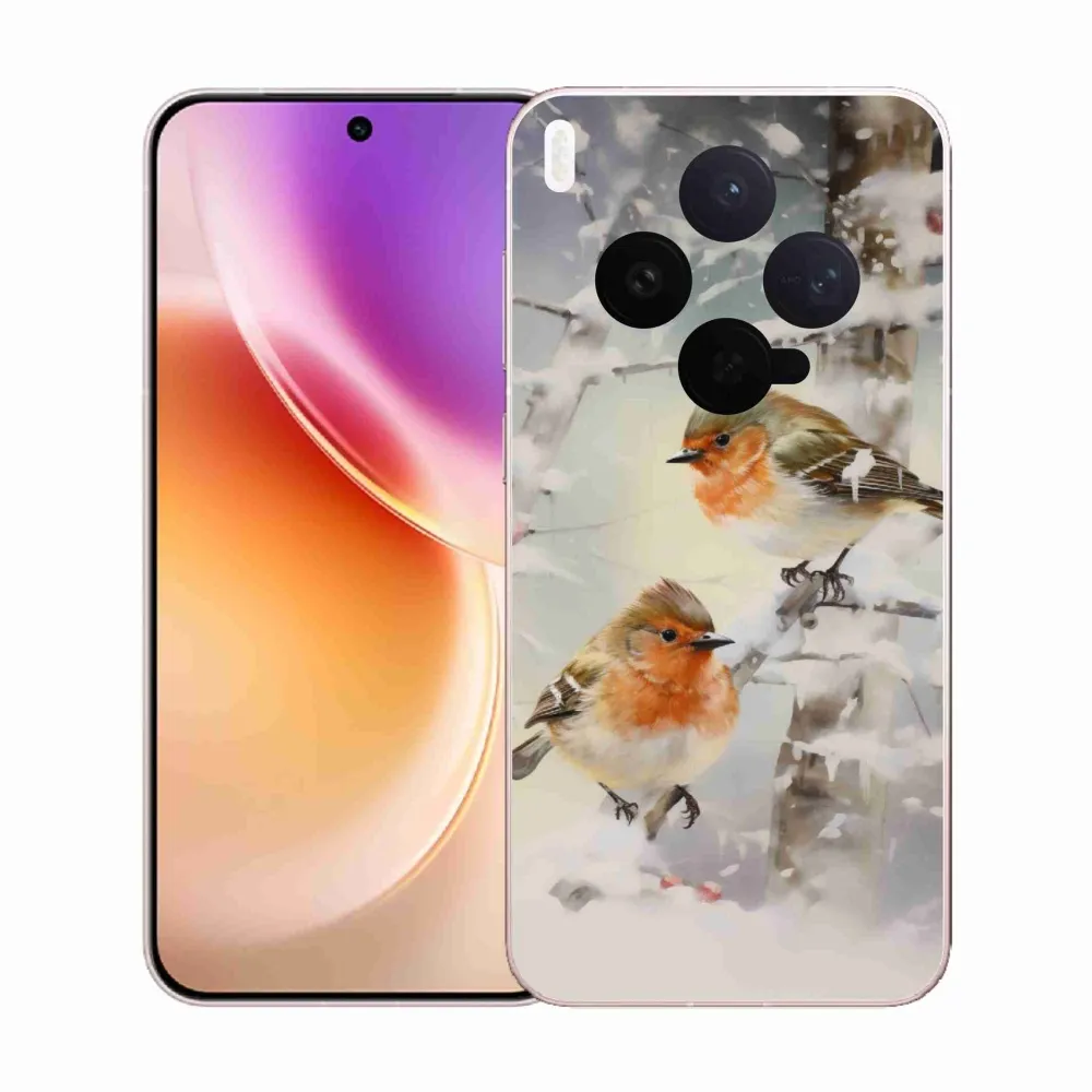 Pružný gélový obal mmCase s obrázkom na Vivo X300 - vtáčiky v zime